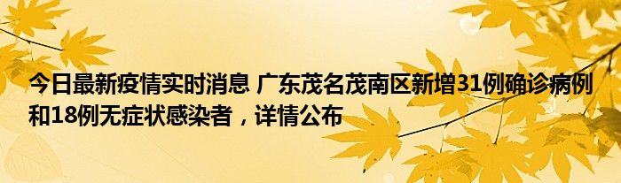 今日最新疫情实时消息 广东茂名茂南区新增31例确诊病例和18例无症状感染者,详情公布