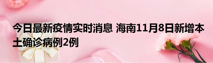 据海南卫健委,11月8日0时—24时,海南省新增本土确诊病例2例,其中,海口市1例,在外省来琼重点人群筛查中发现;三亚市1例,在隔离管控