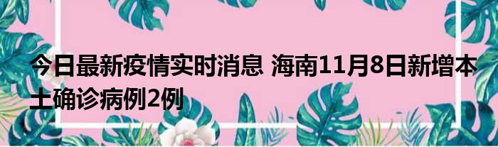 据海南卫健委,11月8日0时—24时,海南省新增本土确诊病例2例,其中,海口市1例,在外省来琼重点人群筛查中发现;三亚市1例,在隔离管控人员中发现