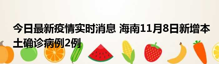 据海南卫健委,11月8日0时—24时,海南省新增本土确诊病例2例,其中,海口市1例,在外省来琼重点人群筛查中发现;三亚市1例,在隔离管控