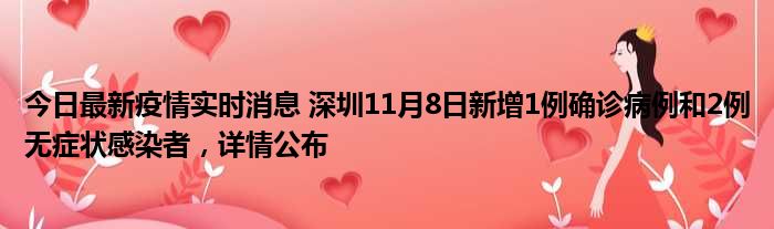 据深圳卫健委,11月8日0-24时,深圳新增1例新冠肺炎确诊病例和2例新冠病毒无症状感染者