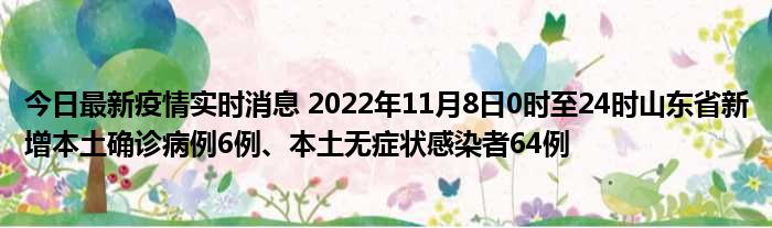 您的位置:首页 >房产频道 > 综合精选 > 今日最新疫情实时消息 2022年11月8日0时至24时山东省新增本土确诊病例6例、本土无症状感染者64例 2022-11-18 09:54:11 • 来源: 导读 免责声明:本文由用户上传,如有侵权请联系删除! 上一篇:今日最新疫情实时消息 广东茂名茂南区新增31例确诊病例和18例无症状感染者,详情公布 下一篇:今日最新疫情实时消息 武汉新增2例确诊病例和34例无症状感染者,详情及轨迹公布