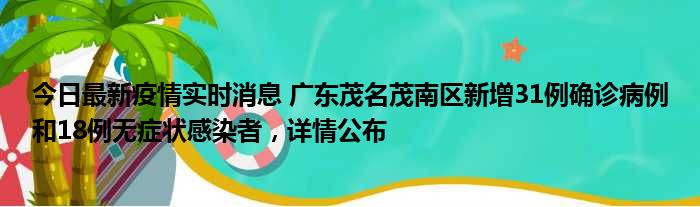 今日最新疫情实时消息 广东茂名茂南区新增31例确诊病例和18例无症状感染者,详情公布