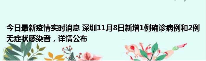 据深圳卫健委,11月8日0-24时,深圳新增1例新冠肺炎确诊病例和2例新冠病毒无症状感染者