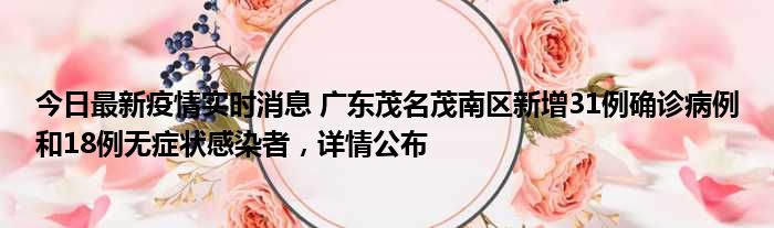 今日最新疫情实时消息 广东茂名茂南区新增31例确诊病例和18例无症状感染者,详情公布