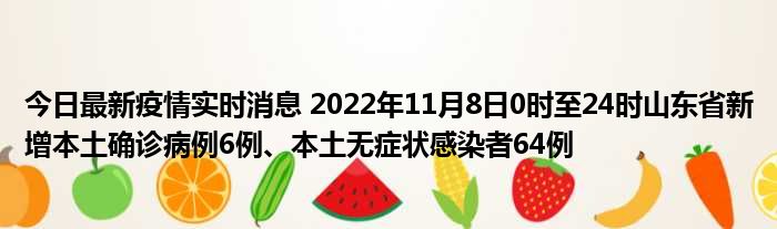 您的位置:首页 >房产频道 > 综合精选 > 今日最新疫情实时消息 2022年11月8日0时至24时山东省新增本土确诊病例6例、本土无症状感染者64例 2022-11-18 14:14:12 • 来源: 导读 免责声明:本文由用户上传,如有侵权请联系删除! 上一篇:今日最新疫情实时消息 广东茂名茂南区新增31例确诊病例和18例无症状感染者,详情公布 下一篇:今日最新疫情实时消息 韩国高考在即,新冠确诊考生可在特设考场参考