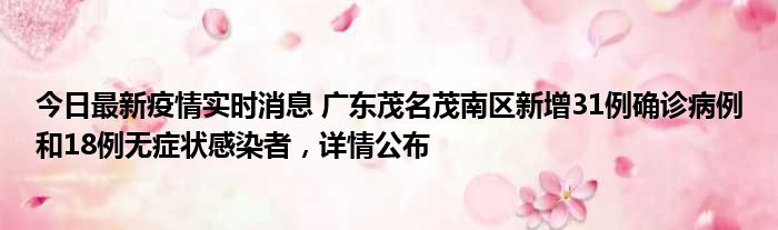 今日最新疫情实时消息 广东茂名茂南区新增31例确诊病例和18例无症状感染者,详情公布