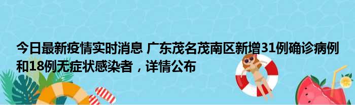 今日最新疫情实时消息 广东茂名茂南区新增31例确诊病例和18例无症状感染者,详情公布