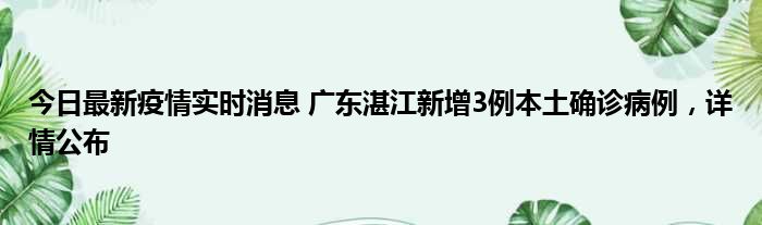 今日最新疫情实时消息 广东湛江新增3例本土确诊病例,详情公布