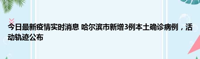 今日最新疫情实时消息 哈尔滨市新增3例本土确诊病例,活动轨迹公布