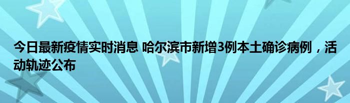 今日最新疫情实时消息 哈尔滨市新增3例本土确诊病例,活动轨迹公布