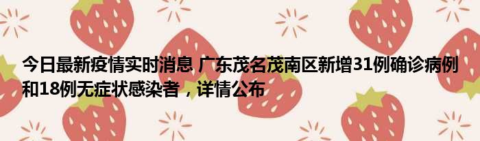 今日最新疫情实时消息 广东茂名茂南区新增31例确诊病例和18例无症状感染者,详情公布
