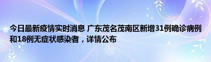 今日最新疫情实时消息 广东茂名茂南区新增31例确诊病例和18例无症状感染者,详情公布