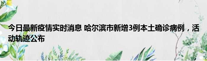 今日最新疫情实时消息 哈尔滨市新增3例本土确诊病例,活动轨迹公布