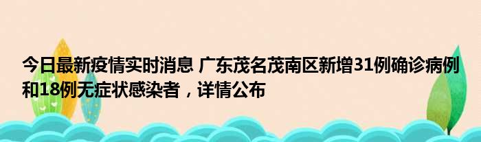 今日最新疫情实时消息 广东茂名茂南区新增31例确诊病例和18例无症状感染者,详情公布