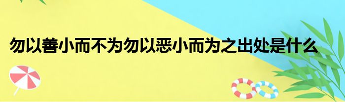 导读 大家好,今天小六子来为大家解答以下的问题,关于勿以善小而不为勿以恶小而为之出处是什么这个很多人还不知道,现在让我们一起来看看吧!1、