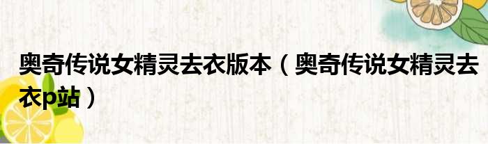 大家好,今天小六子来为大家解答以下的问题,关于奥奇传说女精灵去衣版本,奥奇传说女精灵去衣p站这个很多人还不知道,现在让我们一起来看看吧!