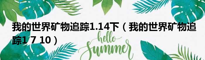 导读 大家好,今天小六子来为大家解答以下的问题,关于我的世界矿物追踪1 14下,我的世界矿物追踪1 7 10这个很多人还不知道,现在让我们一起来