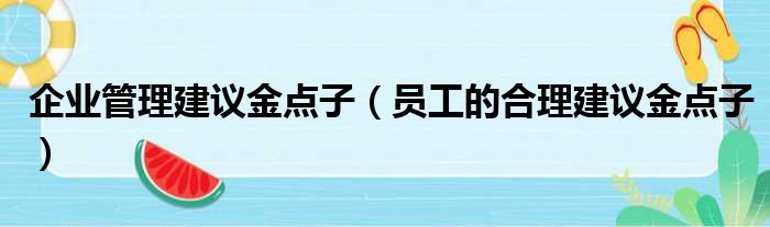导读 大家好,今天小六子来为大家解答以下的问题,关于企业管理建议金点子,员工的合理建议金点子这个很多人还不知道,现在让我们一起来看看吧!1