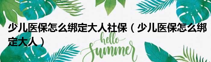 导读 大家好,今天小六子来为大家解答以下的问题,关于少儿医保怎么绑定大人社保,少儿医保怎么绑定大人这个很多人还不知道,现在让我们一起来看