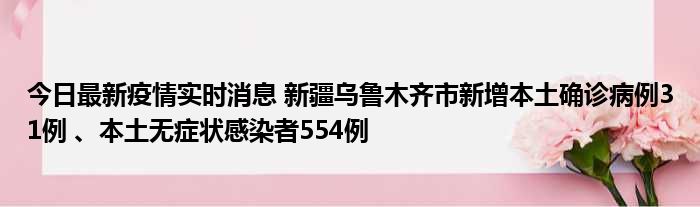 今日最新疫情实时消息 新疆乌鲁木齐市新增本土确诊病例31例 、本土无症状感染者554例