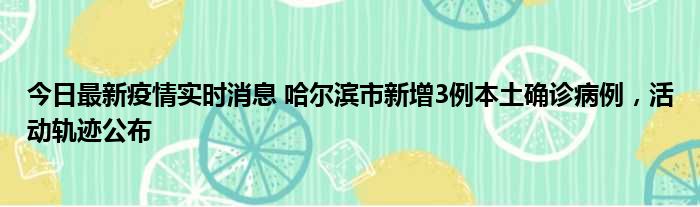 今日最新疫情实时消息 哈尔滨市新增3例本土确诊病例,活动轨迹公布