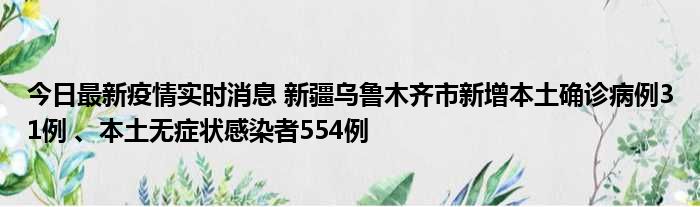 今日最新疫情实时消息 新疆乌鲁木齐市新增本土确诊病例31例 、本土无症状感染者554例