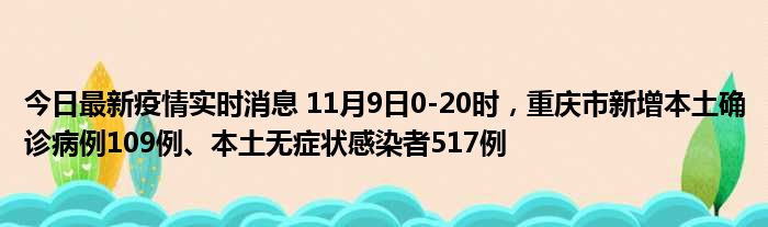今日最新疫情实时消息 11月9日0-20时,重庆市新增本土确诊病例109例、本土无症状感染者517例