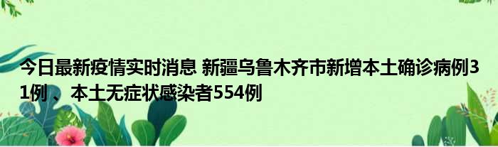 今日最新疫情实时消息 新疆乌鲁木齐市新增本土确诊病例31例 、本土无症状感染者554例