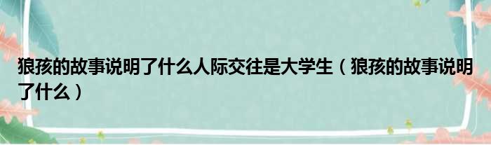 狼孩的故事说明了什么人际交往是大学生(狼孩的故事说明了什么)