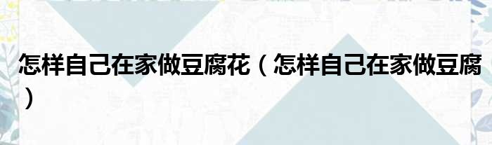 怎样自己在家做豆腐花(怎样自己在家做豆腐)