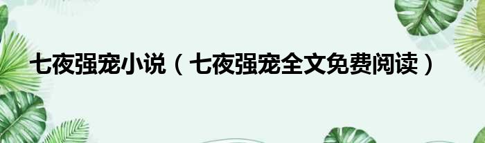 大家好,今天小六子来为大家解答以下的问题,关于七夜强宠小说,七夜强宠全文免费阅读这个很多人还不知道,现在让我们一起来看看吧!