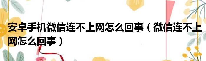 安卓手机微信连不上网怎么回事(微信连不上网怎么回事)