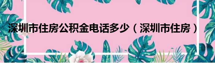 大家好,今天小六子来为大家解答以下的问题,关于深圳市住房公积金电话多少,深圳市住房这个很多人还不知道,现在让我们一起来看看吧!
