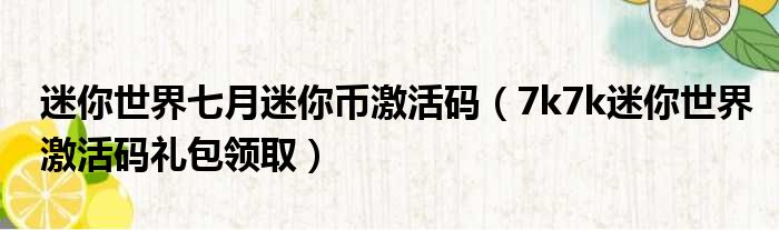 迷你世界七月迷你币激活码(7k7k迷你世界激活码礼包领取)