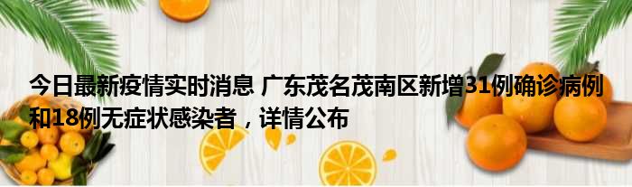 今日最新疫情实时消息 广东茂名茂南区新增31例确诊病例和18例无症状感染者,详情公布