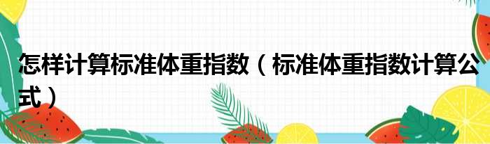 导读 大家好,今天小六子来为大家解答以下的问题,关于怎样计算标准体重指数,标准体重指数计算公式这个很多人还不知道,现在让我们一起来看看吧
