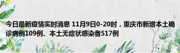 今日最新疫情实时消息 11月9日0-20时,重庆市新增本土确诊病例109例、本土无症状感染者517例