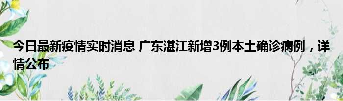 今日最新疫情实时消息 广东湛江新增3例本土确诊病例,详情公布