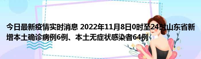 您的位置:首页 >房产频道 > 综合精选 > 今日最新疫情实时消息 2022年11月8日0时至24时山东省新增本土确诊病例6例、本土无症状感染者64例 2022-11-19 15:40:12 • 来源: 导读 免责声明:本文由用户上传,如有侵权请联系删除! 上一篇:手机wifi打不开修复教程视频(手机wifi打不开修复教程) 下一篇:今日最新疫情实时消息 哈尔滨市新增3例本土确诊病例,活动轨迹公布