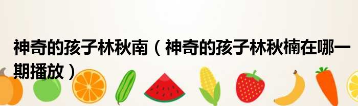 神奇的孩子林秋南(神奇的孩子林秋楠在哪一期播放)