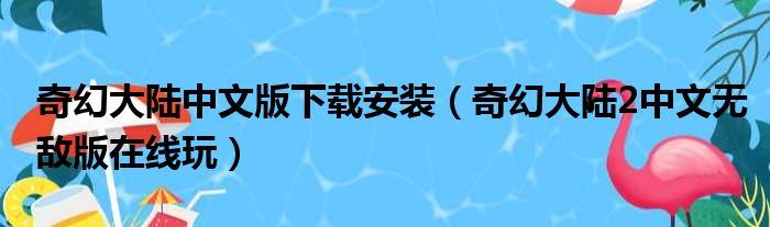 导读 大家好,今天小六子来为大家解答以下的问题,关于奇幻大陆中文版下载安装,奇幻大陆2中文无敌版在线玩这个很多人还不知道,现在让我们一起来