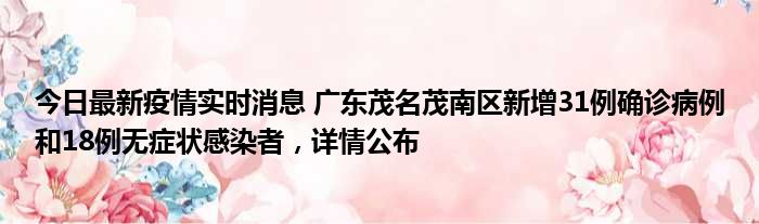 今日最新疫情实时消息 广东茂名茂南区新增31例确诊病例和18例无症状感染者,详情公布