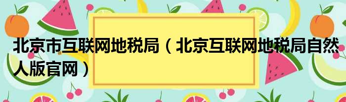 北京市互联网地税局(北京互联网地税局自然人版官网)