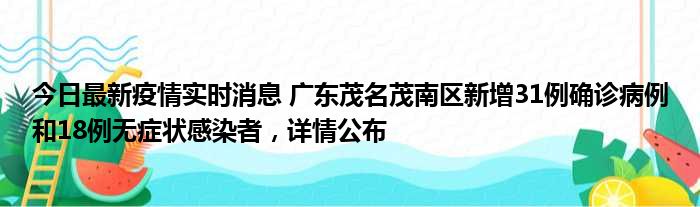 今日最新疫情实时消息 广东茂名茂南区新增31例确诊病例和18例无症状感染者,详情公布