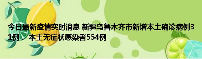 今日最新疫情实时消息 新疆乌鲁木齐市新增本土确诊病例31例 、本土无症状感染者554例