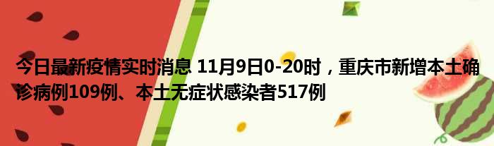 今日最新疫情实时消息 11月9日0-20时,重庆市新增本土确诊病例109例、本土无症状感染者517例