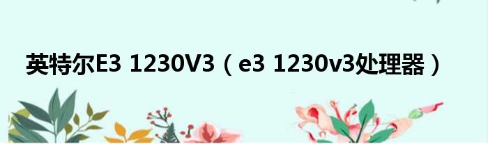 导读 大家好,今天小六子来为大家解答以下的问题,关于英特尔E3 1230V3,e3 1230v3处理器这个很多人还不知道,现在让我们一起来看看吧!1、E3