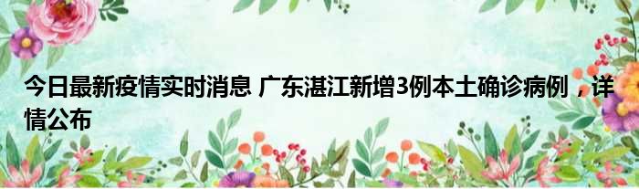 今日最新疫情实时消息 广东湛江新增3例本土确诊病例,详情公布