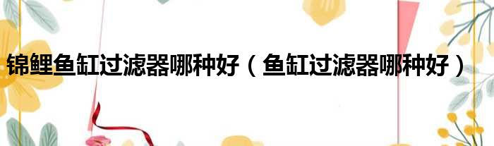 锦鲤鱼缸过滤器哪种好(鱼缸过滤器哪种好)